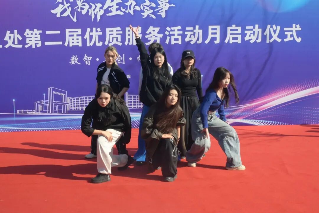 校团委红星合唱团献上精彩的开篇歌舞,以激昂的旋律搭配活力满满的表演,迅速点燃现场氛围,为本次优质服务活动月拉开序幕。