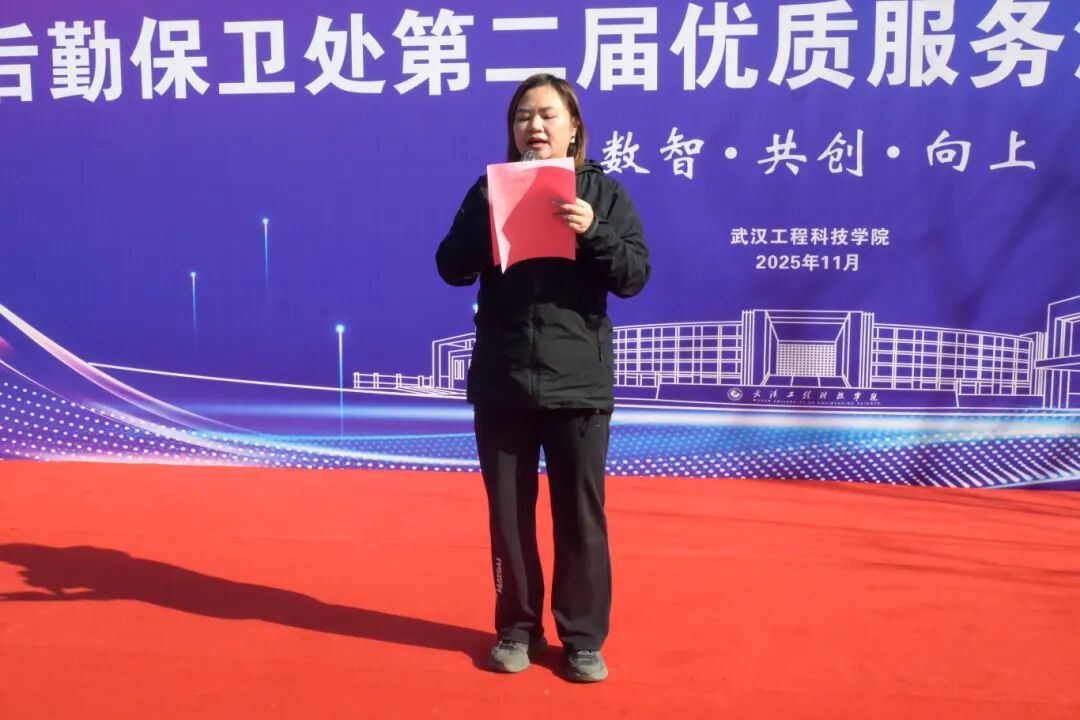 后勤保卫处副处长周瑞在活动介绍中指出,本次活动以“聚力提质增效,赋能向上发展”为核心主题,围绕“平安、乐享、美丽、节能”四大建设目标,统筹开展五大主题活动,分别是安全服务月、环境提升月、品质服务月、技能提升月和后勤服务接待月。她倡议,全体师生积极参与优质服务活动,携手共建安全、和谐、美丽、温馨的校园环境。