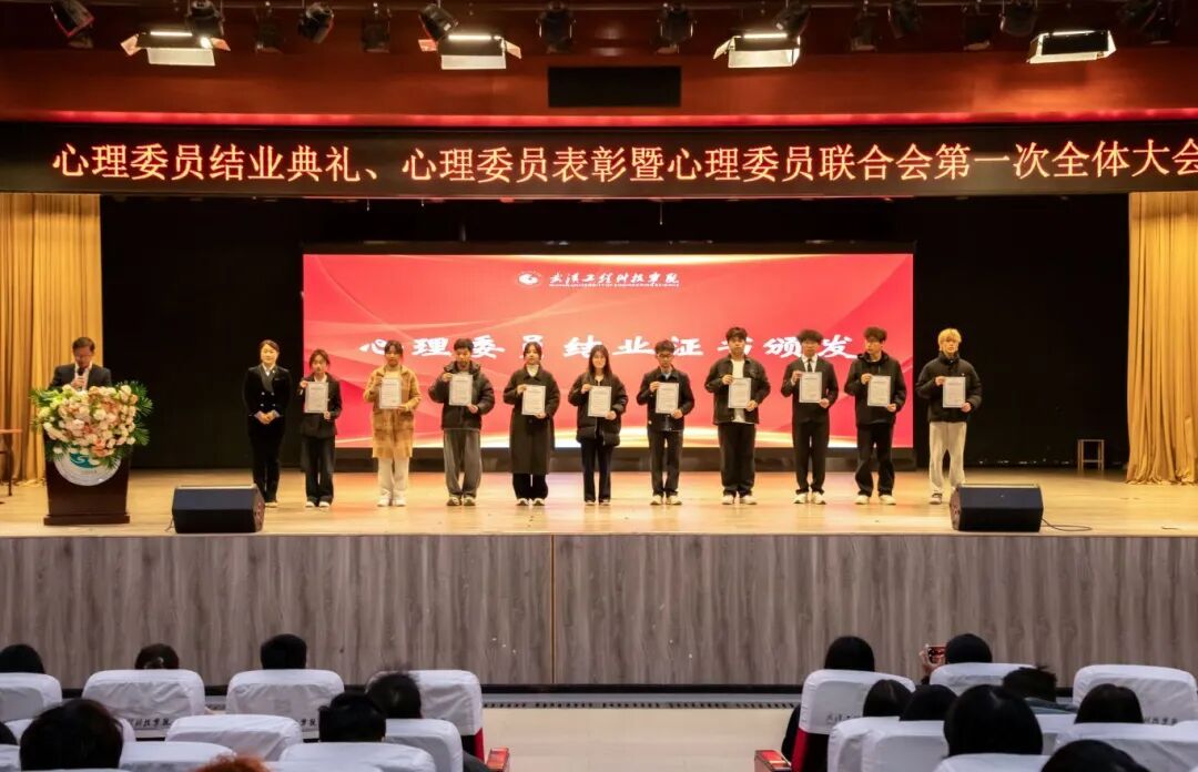 “十佳心理委员”表彰环节备受瞩目,艺术与传媒学院党总支书记卢潘为十位获奖同学颁发荣誉证书。沉甸甸的荣誉背后,是他们在同辈心理帮扶、班级心理健康建设中的默默付出与突出贡献,他们用实际行动诠释了心理委员的责任与担当。