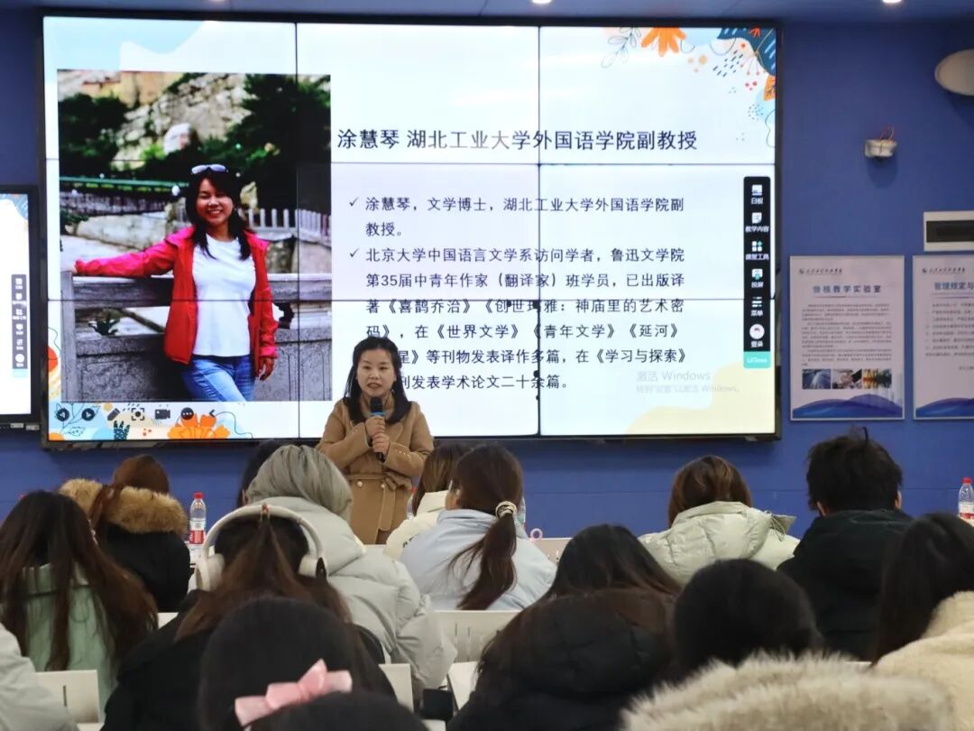 涂慧琴教授随后聚焦升学规划,系统介绍湖北工业大学研究生教育的学科特色、平台资源、师资优势及培养成效。她还针对2026年外国语学院研究生招生政策进行解读,并从目标确立、复习方法等方面提供备考建议,为有意深造的学生指明方向。