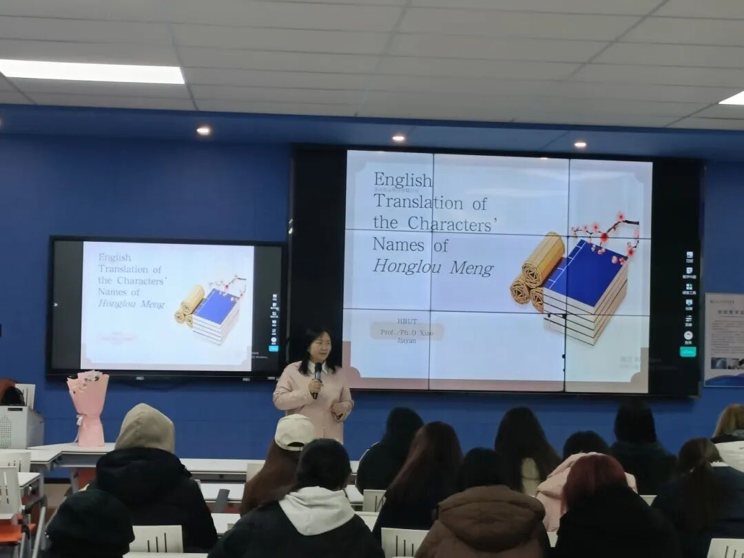 肖家燕教授做了题为红楼梦人物姓名翻译趣谈的讲座,通过“袭人”“元迎探惜”等生动例子,揭示了人物姓名中隐藏的文化密码与命运隐喻,并展现了译者不同文化立场与美学选择的生动图景,不同译者在音译、意译之间的巧妙平衡与跨文化匠心。
