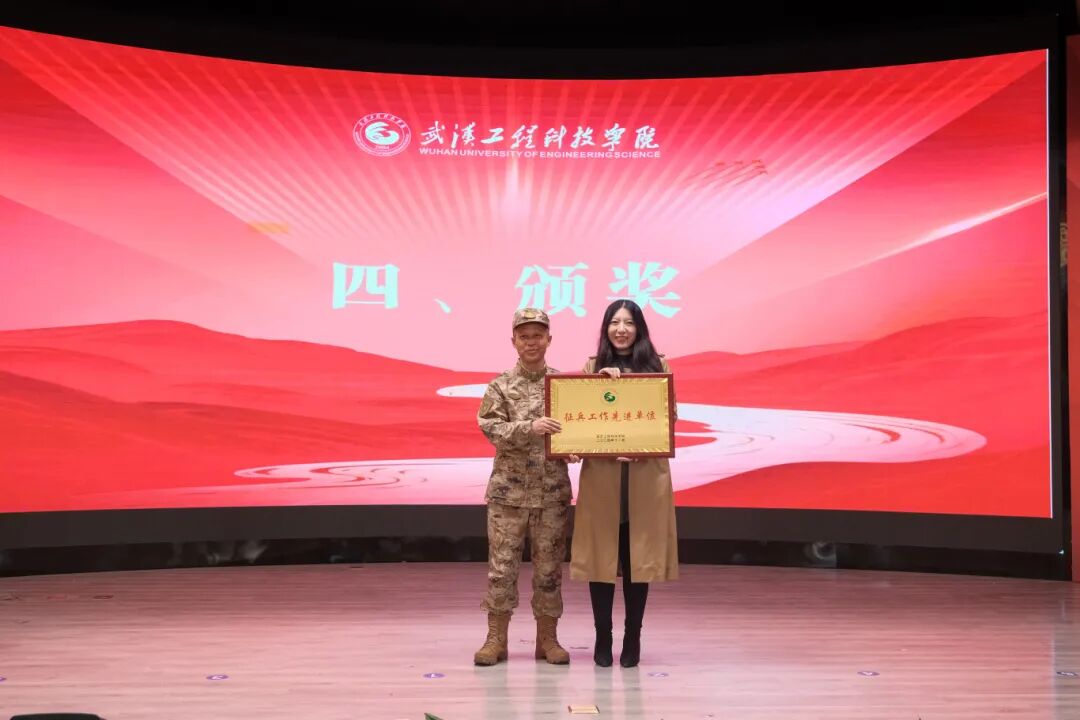 江夏区人民政府武装部政委刘泽安为人文学院颁发“征兵工作先进单位”。