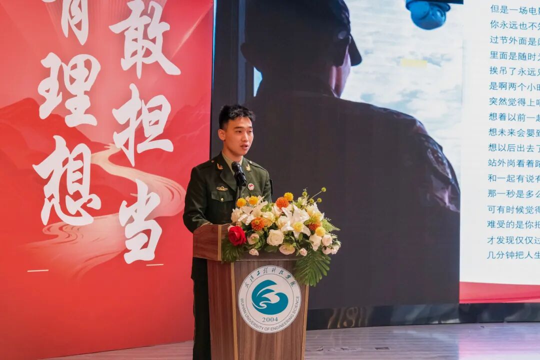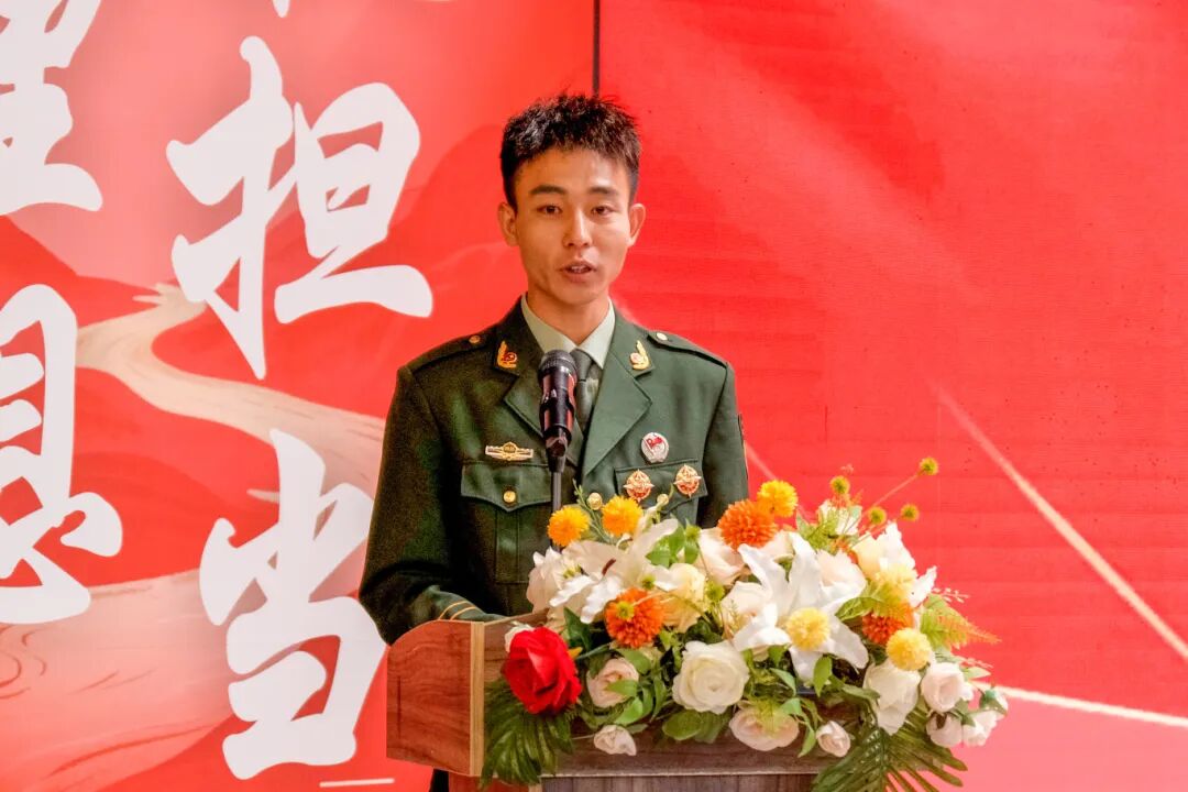 计算机与人工智能学院的苏太成作为优秀退役大学生代表进行军旅故事分享。他分享了自己在服役期间从普通战士到班长的成长故事,深刻体会到捍卫家国的责任与担当。他指出,尽管军旅生涯中有伤病和对亲情的遗憾,但这些经历使他更加坚强。他认为,五年军旅生涯重塑了他,让他更加忠诚、有责任感和坚持到底。他呼吁同学们勇敢参军,在军营中磨砺自我,用实际行动书写青春华章。