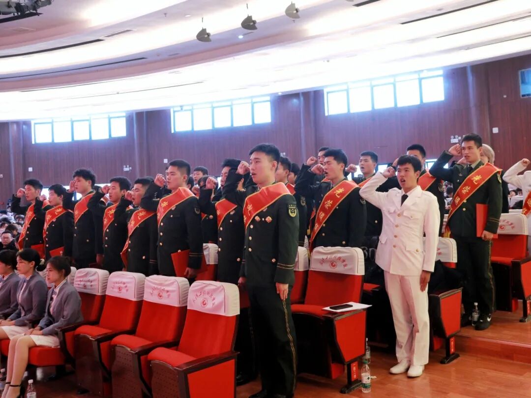王磊带领全体退役复学士兵重温军人誓词。