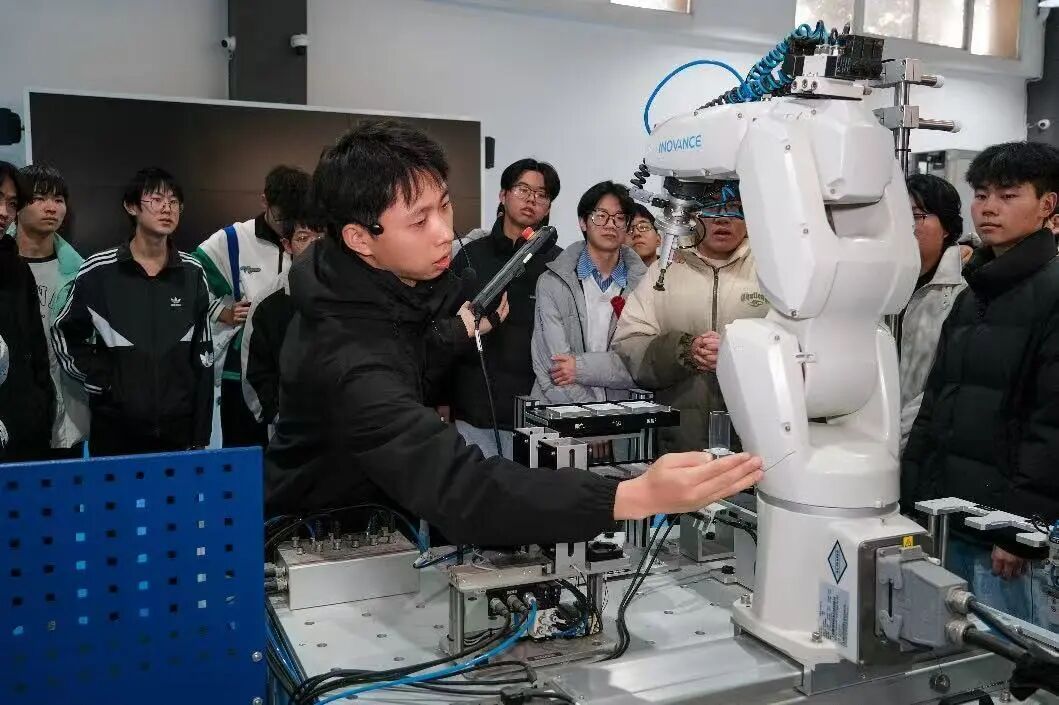 讲解过程中,刘丽明特别提到,该智能制造中心不仅支撑日常教学与实训,也为学科竞赛和科研项目提供了设备与场地支持,体现出“教学-竞赛-创新”一体化的育人成效。