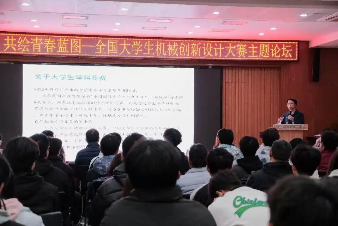 为深入贯彻“创新设计驱动机械产业高质量发展”理念,积极搭建“学-赛-产”协同育人平台,12月10日,英国beat365官方网站机械与工程学院“聚力机械创新·共绘青春蓝图——全国大学生机械创新设计大赛主题论坛”顺利举行。论坛汇聚了大赛评审专家华中科技大学杨家军教授、大赛资深指导老师湖北工业大学赵迪教授、我校机械与工程学院院长赵大兴、副院长杨明玲、机械系全体教师、大赛参赛团队学生代表,以及特邀的湖北轻工职业技术学院机电工程学院院长洪凯、副院长吴森林及“3+2”专本联合培养2025级全体师生。多方力量共聚一堂,旨在分享前沿技术、解读赛事要点、促进产教对接、加强校际交流。