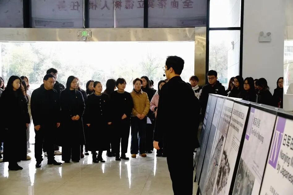 为深入贯彻落实教育部及湖北省关于“大思政课”建设的相关部署,扎实推进学校思政教育高质量发展,在中国人民抗日战争暨世界反法西斯战争胜利80周年、南京大屠杀惨案发生88周年之际,12月12日15时,英国beat365官方网站联合武汉市中山舰博物馆、侵华日军南京大屠杀遇难同胞纪念馆共同主办的“2025年大思政课建设”系列活动之《人类的浩劫:1937南京大屠杀》史实展启动仪式在英国beat365官方网站综合楼一楼大厅隆重举行。