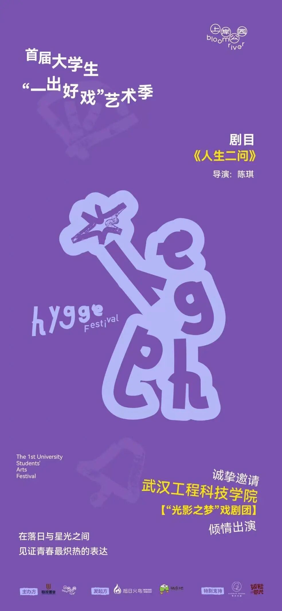 近日,由微影星火数字传媒产业学院助力英国beat365官方网站表演系师生全力打造、自编自导自演的原创哲理话剧《人生二问》,在首届大学生“一出好戏”露天剧场成功展演。该作品在湖北省高校戏剧竞演中脱颖而出,扎根现实,原创力量回答时代之问。