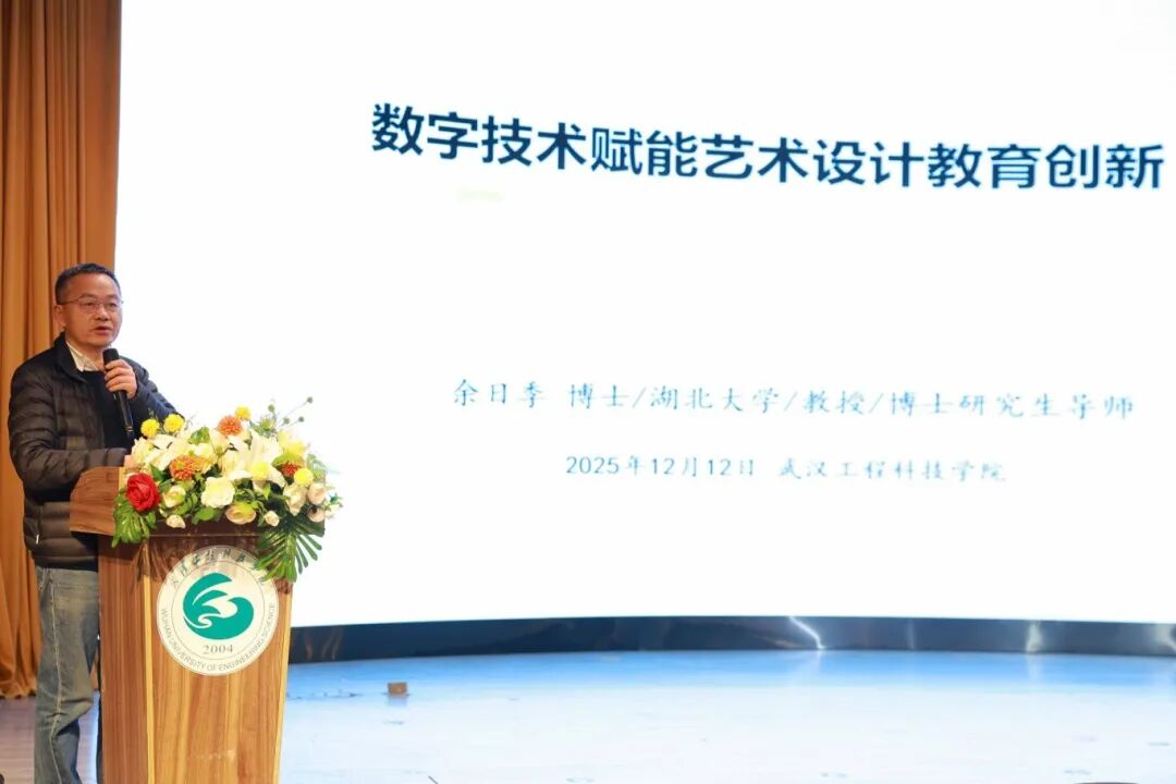 主题报告阶段,湖北大学艺术与设计学院副院长、博士生导师余日季教授,围绕“文化科技融合视域下的数字创意设计教育”这一核心论题展开学术报告。他系统阐释了非遗数字化保护与创新、虚拟现实场景建构、文化记忆工程实践等前沿交叉领域的研究进路与典型案例,并进一步论证了在技术迭代背景下,设计教育应如何在数字赋能过程中保有文化主体性、赓续价值脉络,从而实现人文精神引领与创新实践能力的辩证统一。