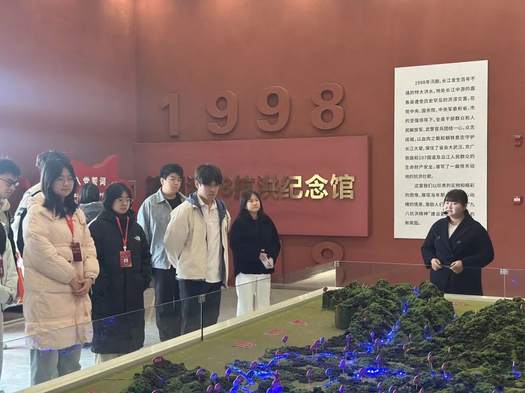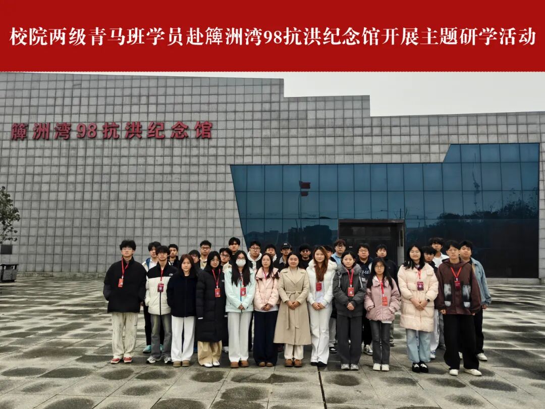 12月12日,英国beat365官方网站校院两级青马班学员代表赴簰洲湾98抗洪纪念馆开展了以“学习抗洪精神,凝聚青春力量”为主题的研学活动,此次研学活动由校级青马班班主任肖玉容带队。活动旨在通过实地学习、仪式教育、主题宣讲等形式,引导青年学子深刻领会“万众一心、众志成城,不怕困难、顽强拼搏,坚韧不拔、敢于胜利”的伟大抗洪精神,进一步坚定理想信念,强化使命担当。