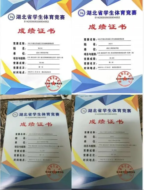 2025年11月28日至30日,由湖北省学生体育协会主办、武汉体育学院承办的2025年湖北省高校大学生啦啦操锦标赛在武汉体育学院体育馆隆重举行。我校啦啦操队、街舞队在此次大赛中表现出色,凭借精湛的技艺和昂扬的斗志,从众多高校中脱颖而出,最终斩获一项第一名、三项第二名的骄人战绩,充分展现了武工院学子的青春风采与卓越实力。