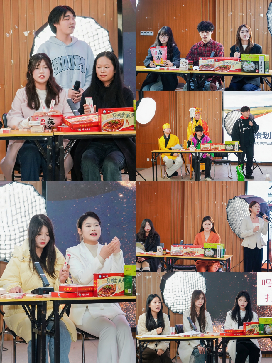 总决赛现场,14 支参赛队伍按照 “1 分钟短视频展示 + 3 分钟策划案 PPT 演示 + 2 分钟现场直播模拟 + 1 分钟答辩” 的全流程比拼模式,全面展现创意策划、产品讲解、临场应变与营销推广等综合能力。
