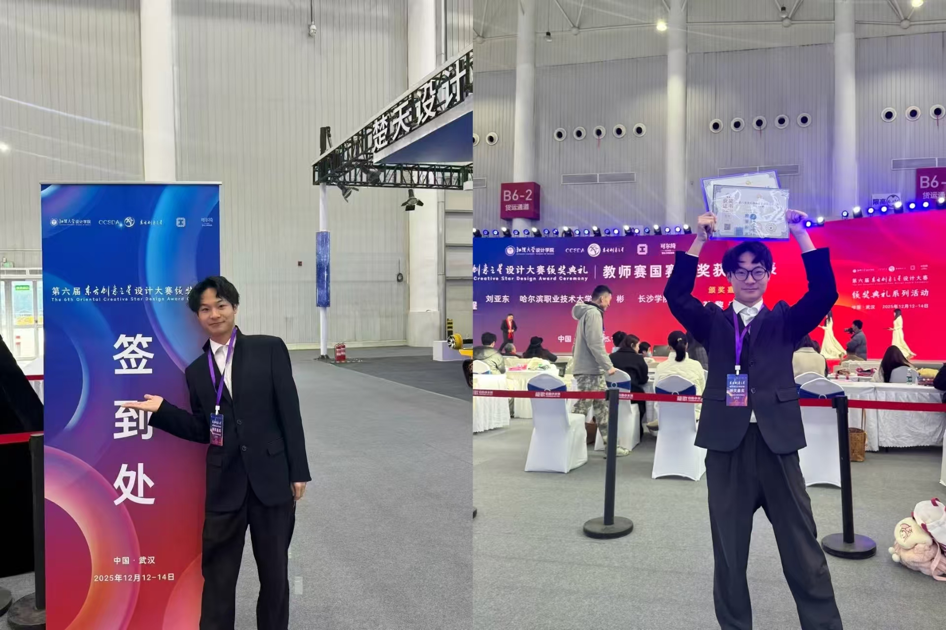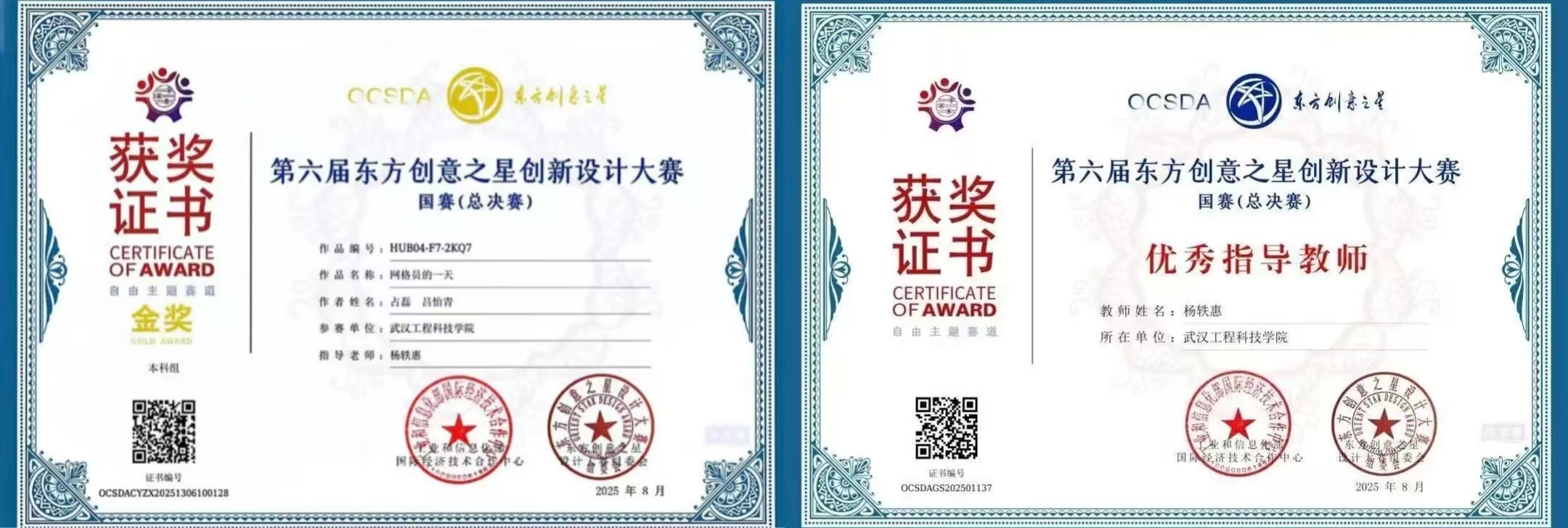 近日,2025武汉国际工业设计博览会工业设计产教融合专题活动在武汉国际博览中心隆重举行,第六届东方创意之星创新设计大赛颁奖典礼作为2025武汉国际工业设计博览会的重要组成部分同步圆满举办。英国beat365官方网站艺术与传媒学院2022级广播电视编导专业学生占磊、吕怡青的作品《网格员的一天》,在全国数万件参赛作品中脱颖而出,斩获全国总决赛金奖。杨轶惠凭借专业指导荣获优秀指导老师奖。同时,占磊以扎实的专业实力与亮眼表现,成功当选为本届赛事学生发言代表。