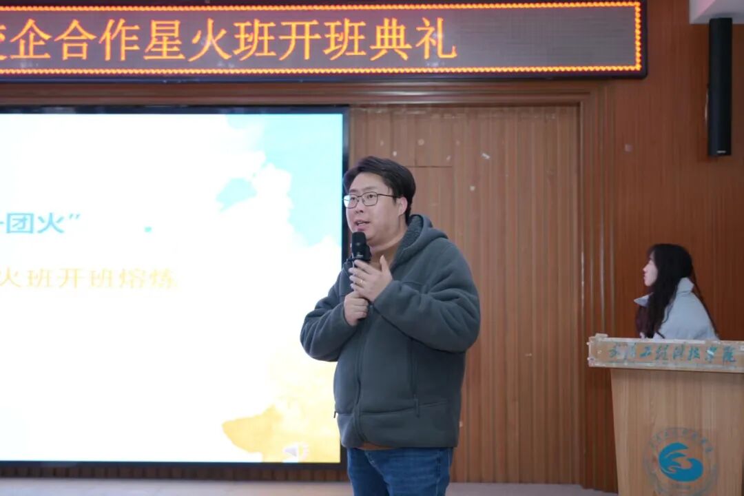 机电一体化专业孙开涵作为订单班学生代表在发言中感谢学校与企业提供的成长平台,并承诺将以饱满的热情投入学习,主动提升实践技能,力争成为符合企业需求的复合型人才,以实际行动诠释“星火”精神。