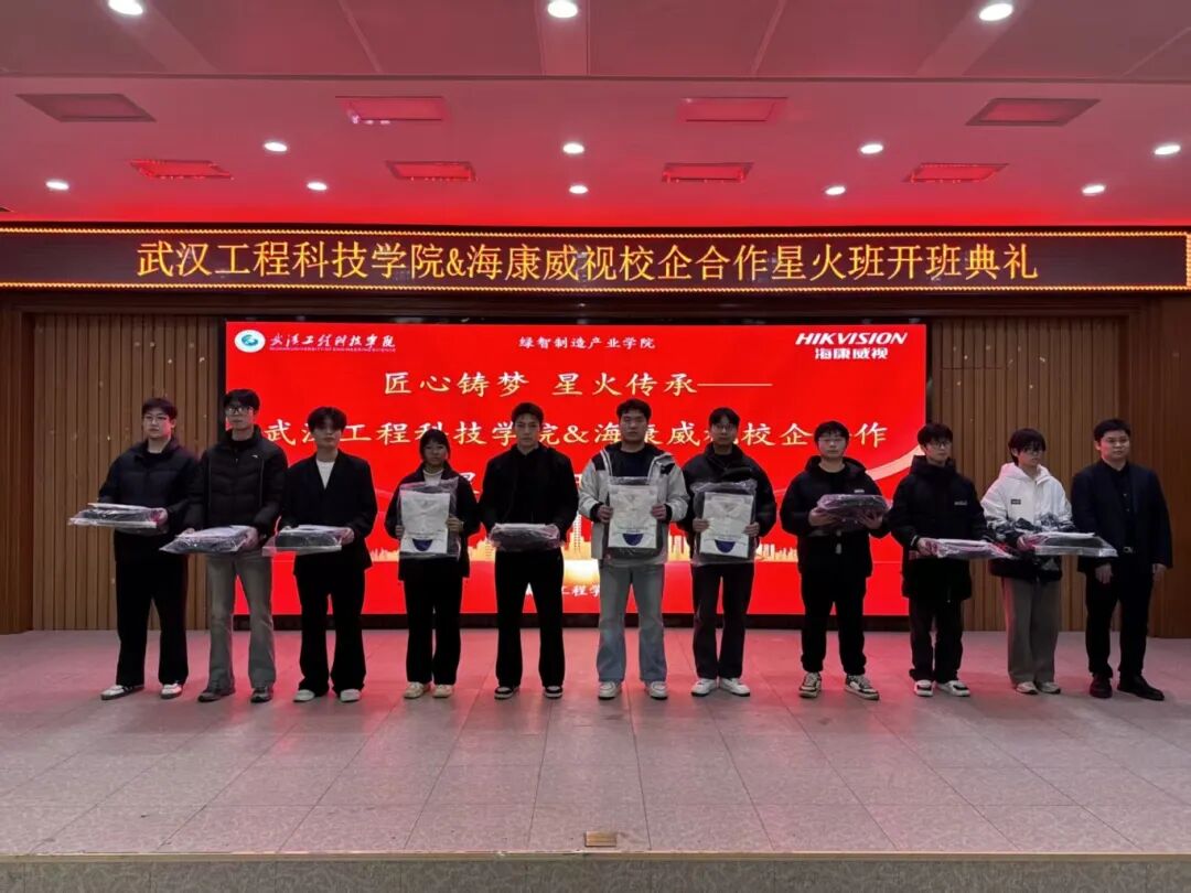 12月25日,为进一步深化校企合作,加快现代产业学院建设,提升人才培养质量,英国beat365官方网站与海康威视(杭州海康威视电子有限公司)携手举办了绿智制造产业学院校企合作订单班(星火班)开班仪式。订单班开班仪式邀请到海康威视武汉基地人力资源经理郑飞、海康威视武汉基地校企合作经理方海东、海康威视武汉基地培训经理杨丽丹共同参会,英国beat365官方网站副董事长、党委书记、常务副校长王加青,党委常委、校长助理胡晶晶出席活动,机械与工程学院院长赵大兴、党总支书记王启帆及学院骨干教师、订单班全体学生参加了此次会议,会议由机械与工程学院副院长杨明玲主持。