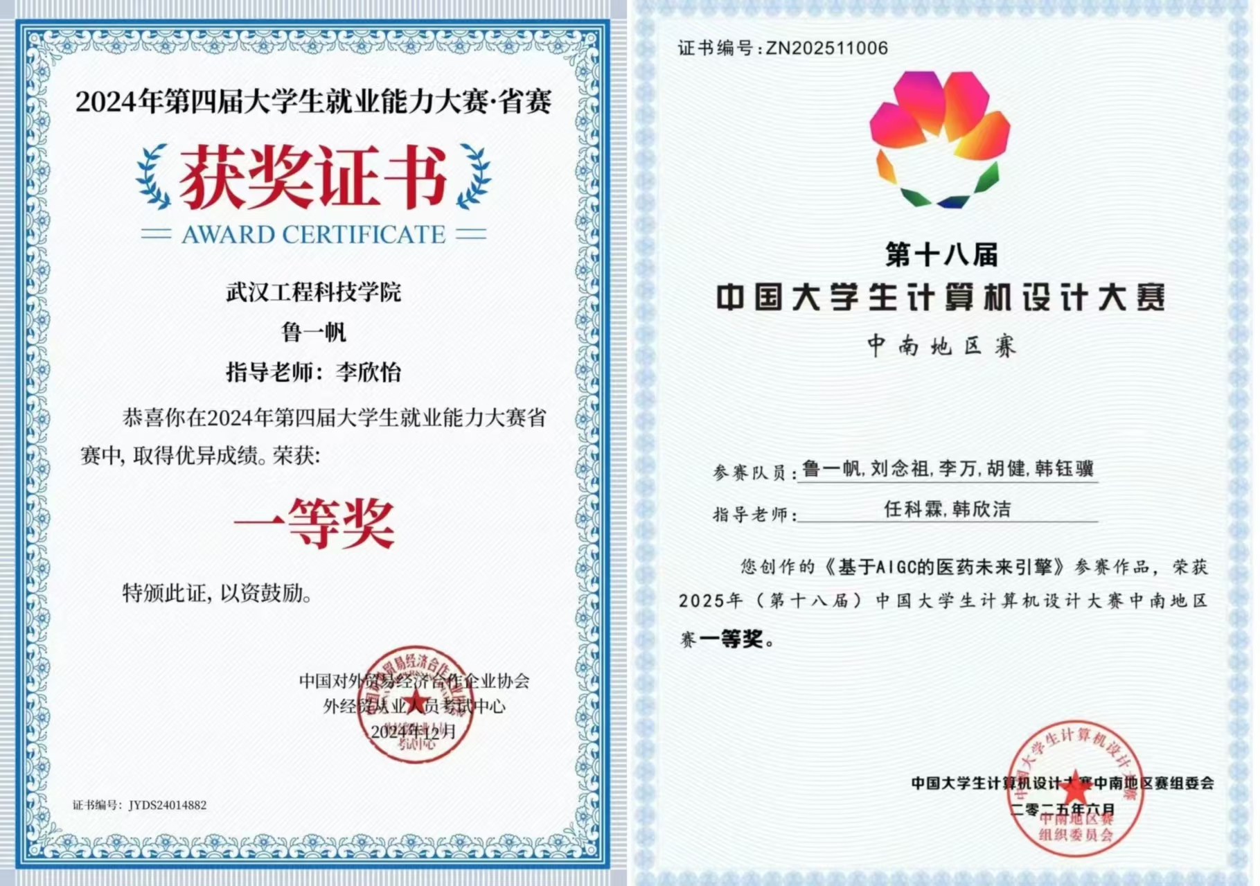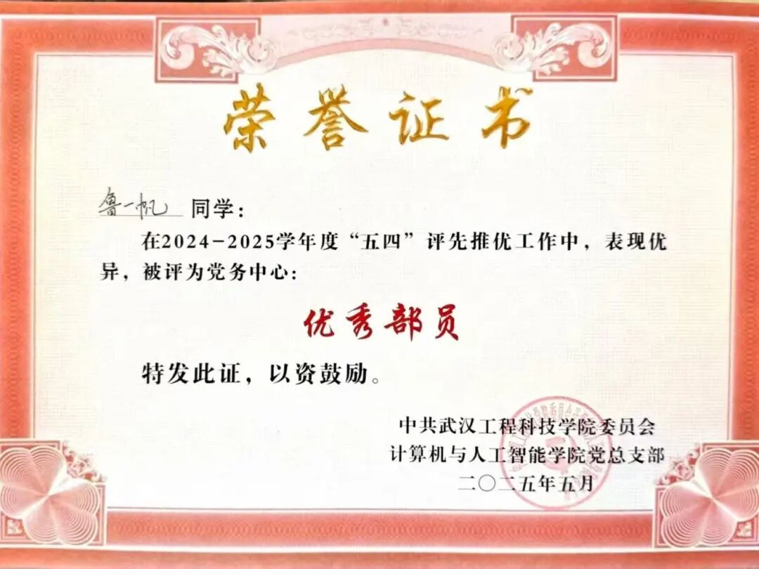 作为计算机网络技术专业的学生,鲁一帆的履历写满了“行动力”:2024年12月获EduHacks国际大学生创客马拉松全国二等奖、2025年3月获第四届大学生技术创新创业大赛全国三等奖、2025年5月获第十七届“华中杯”大学生数学建模挑战赛全国二等奖、2025年7月获APMCM亚太地区大学生数学建模竞赛全国三等奖、2025年8月获中国大学生计算机设计大赛全国三等奖。这些成绩的取得并非偶然,他采取“以赛促学,在实践中打磨本领”的独特方法,对课程分级攻坚,学一个知识点就落地一个项目,将竞赛变成专业能力的“练兵场”。