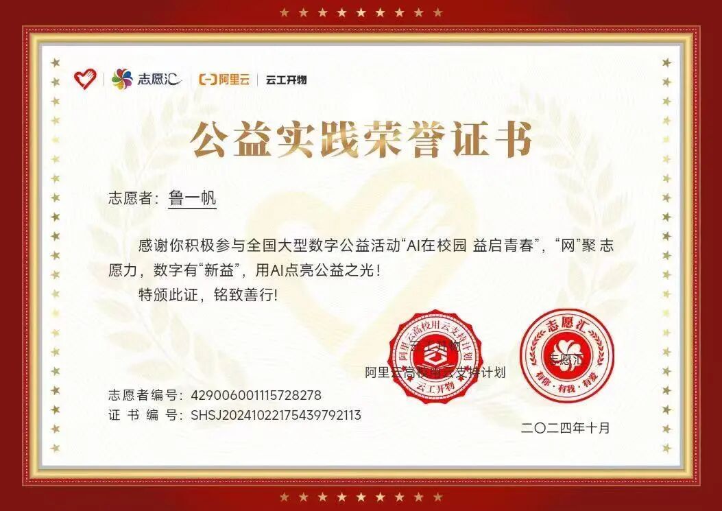 身兼数职的鲁一帆以责任为锚,在服务中不断成长。他既是班级事务的“主心骨”,也是学院党务与团学工作的“多面手”,还担任学校数学建模协会副主席。这些经历让他跳出“书本圈”,学会从实际需求出发解决问题,也让原本内向的他逐渐变得更外向。谈及志愿活动,他坦言:“不论是给孩子送物资还是上课,都提升了我的社交能力。志愿服务与学生工作并非虚度,它让我走出校园小圈子,在实践中塑造了问题导向的思维,也让我更理解回馈社会的意义。”