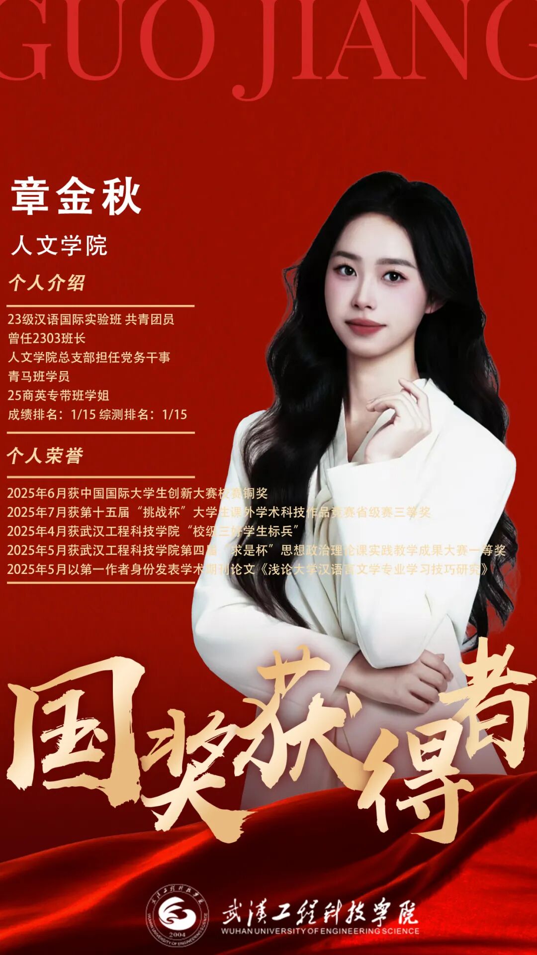 “国奖不是终点,而是新的起点。”章金秋寄语学弟学妹,“希望大家都能找到自己的方向,脚踏实地,在追逐梦想的过程中实现自我价值,用实际行动诠释青年一代的责任与担当。”