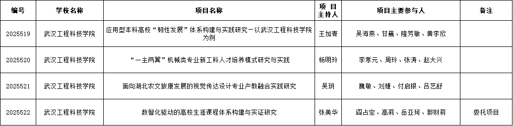 近日,湖北省教育厅正式公布《省教育厅关于公布2025年湖北本科高校省级教学改革研究项目的通知》,我校共有4个项目成功获批,立项数量创新高。
